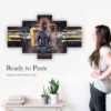Buddha Set of Five 3D Framed Paintings for Wall Decoration – Ideal for Home, Living Room, and Bedroom (75 x 43 CM)